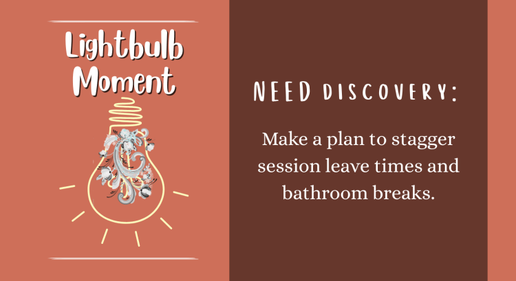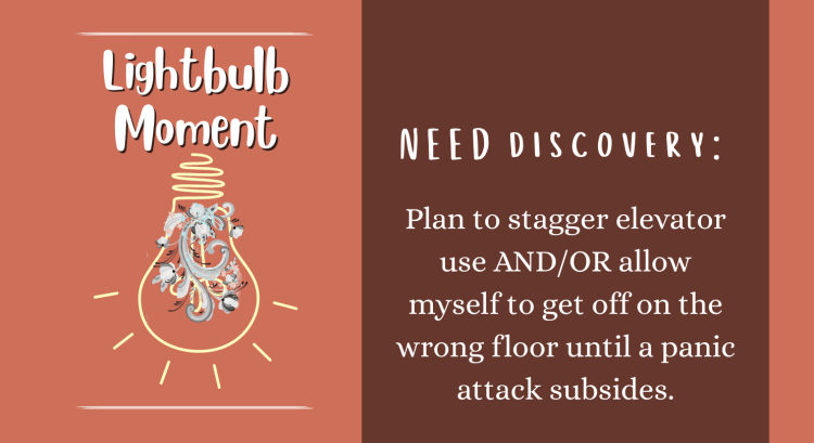 Although I learned early on that I feel trapped when I sit at the front or middle of a room, I have also had panic attacks in the back of a room. In order to be proactive, I now plan to specifically sit at the end of a row near an exit in the back if at all possible. But even armed with this understanding, at last week’s conference I discovered yet another trigger for this anxiety layer—transitioning from session to session can be tricky. I don’t feel good herding out the door with everyone else, but I also don’t feel good skipping out early to make sure I get my very specific seating preference in the next room. So, before I attempt another major conference like this, I will need to think through this new understanding and figure out how to adjust my self-care plan accordingly.